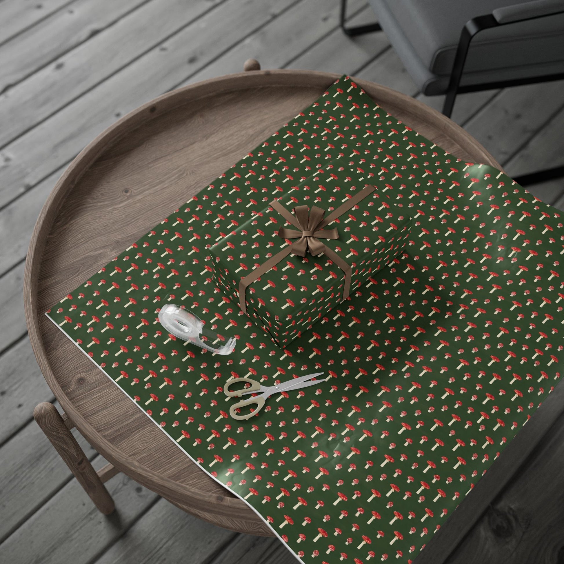 Woodland Mushroom Wrapping Paper | Forest Green Holiday Gift Wrap